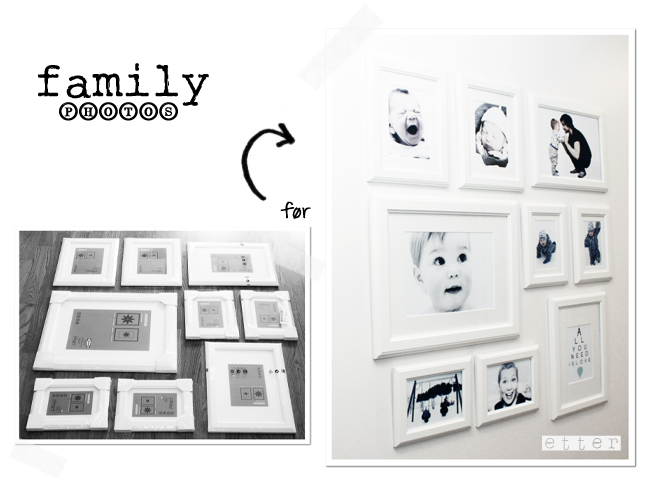 Jeg kjøpte våre rammer på IKEA. De er rimelige, og finnes i mange størrelser.