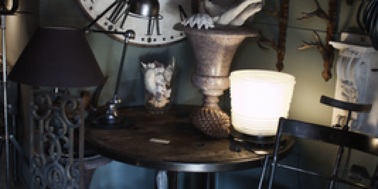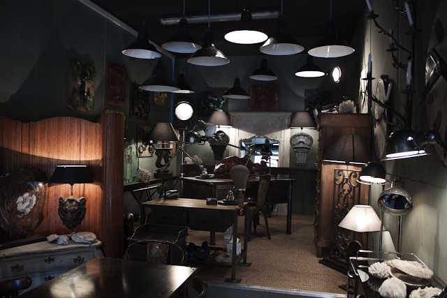 Jieldé lamper i fleng, og mange store vintage klokker. Fotolampa var kjempetøff.