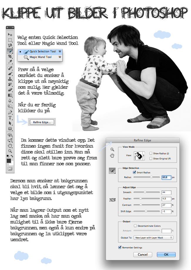 Det finnes veldig mange måter å klippe ut bilder/elementer i Photoshop.