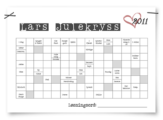 gjemte vi gaven på et lurt sted, og jeg laget et julekryss der løsningsordet