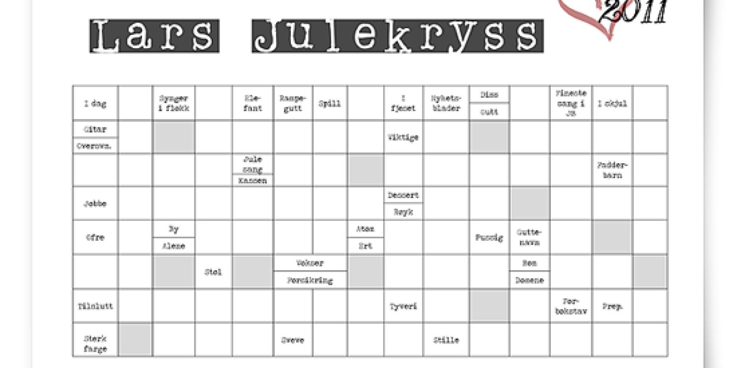 gjemte vi gaven på et lurt sted, og jeg laget et julekryss der løsningsordet